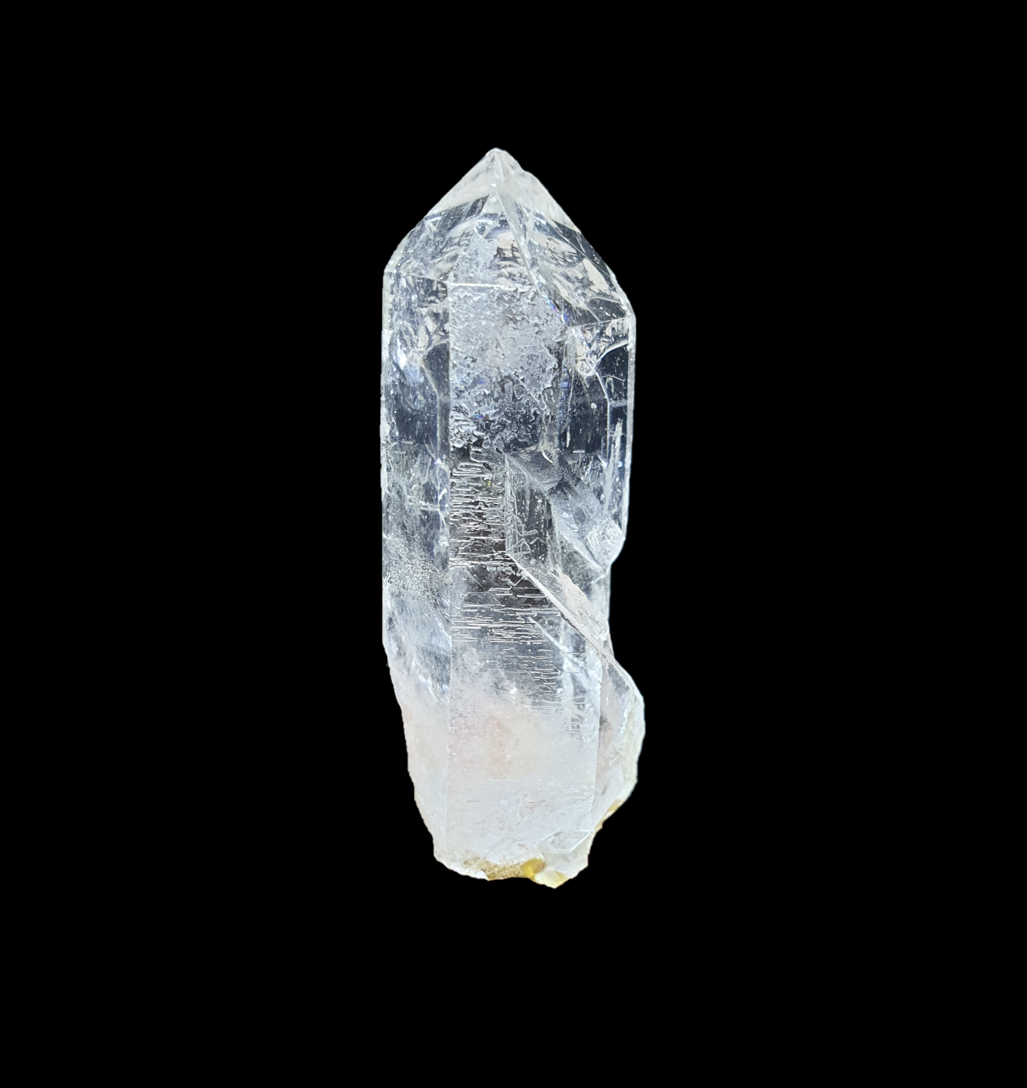 Les cristaux de quartz dont la croissance s’est effectuée à partir d’un substratum montrent des faces prismatiques et se terminent par une pyramide (l’autre extrémité étant englobée dans la roche).