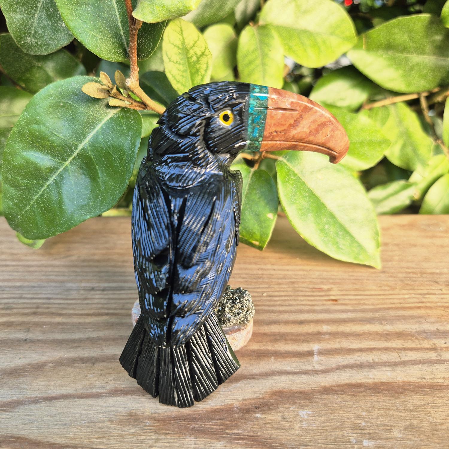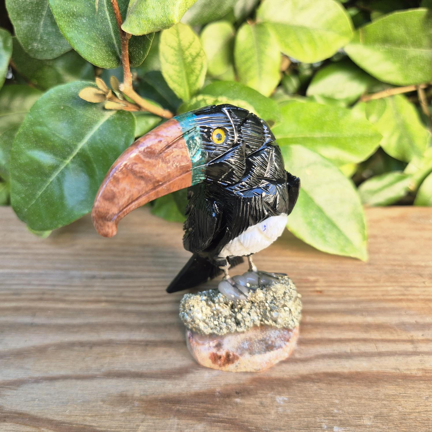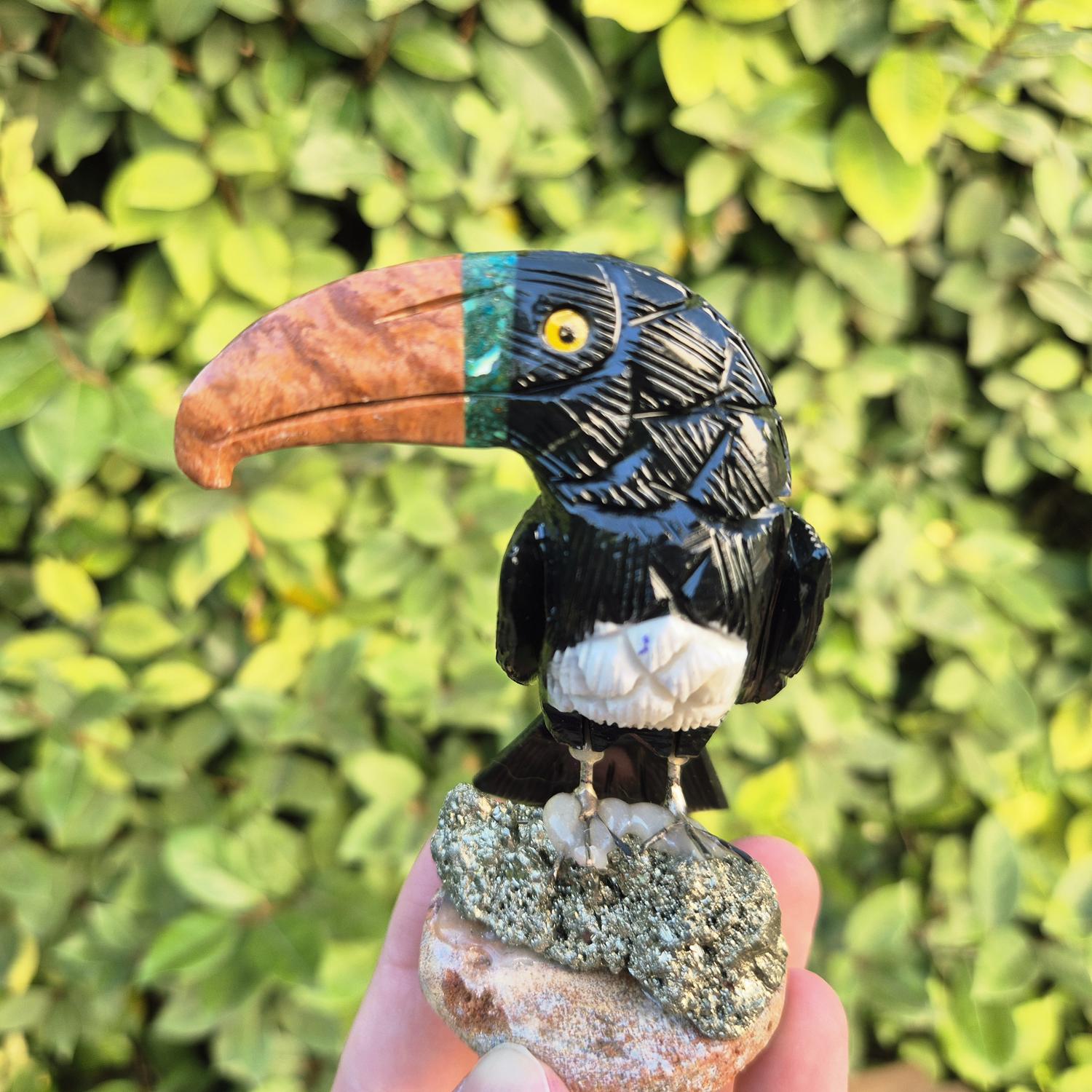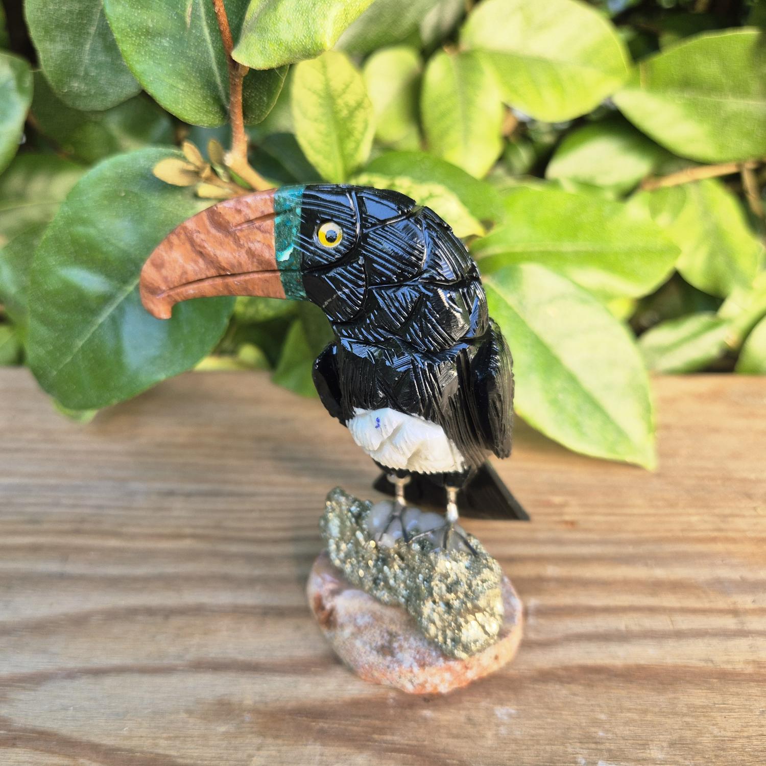 Toucan sculpté en pierres naturelles.