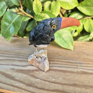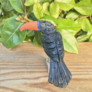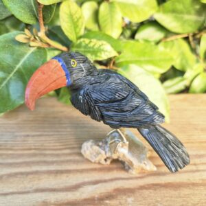 Toucan sculpté en pierres naturelles.