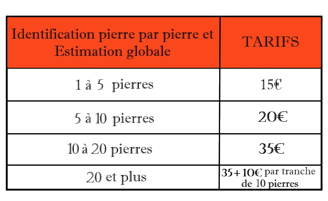 Sur place j’identifierai et prendrai des photos de chaque pierre et vous donnerai une estimation de la valeur de la collection.